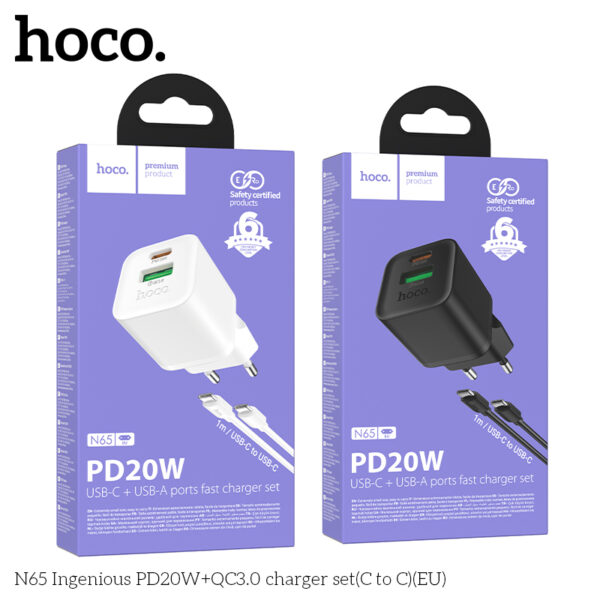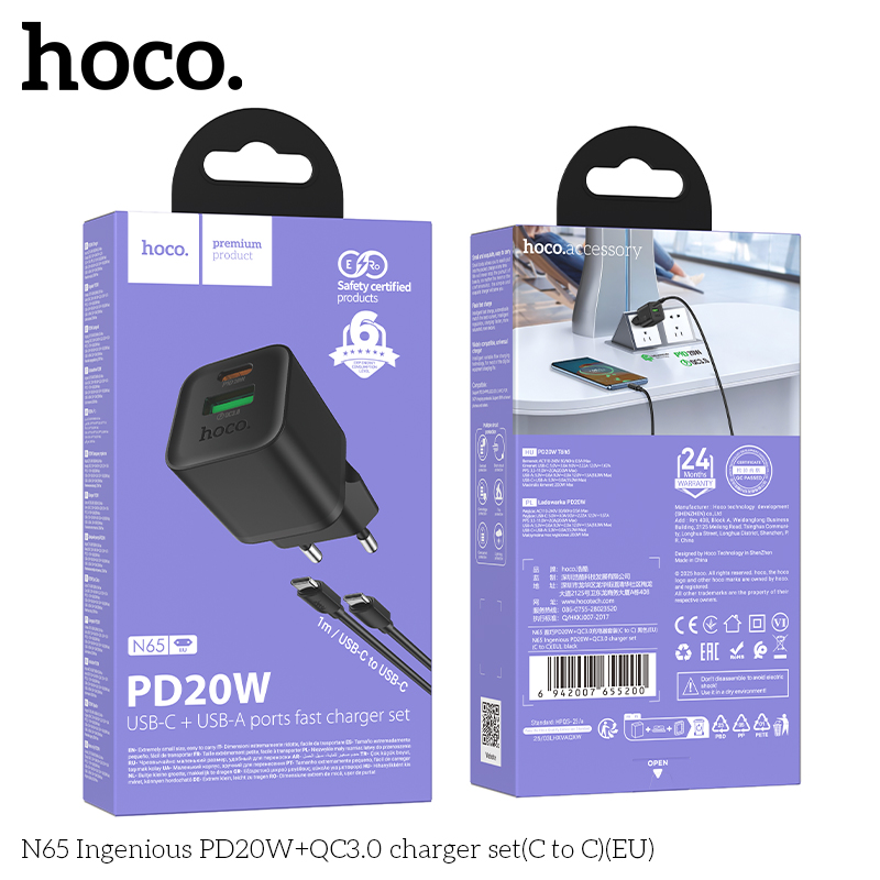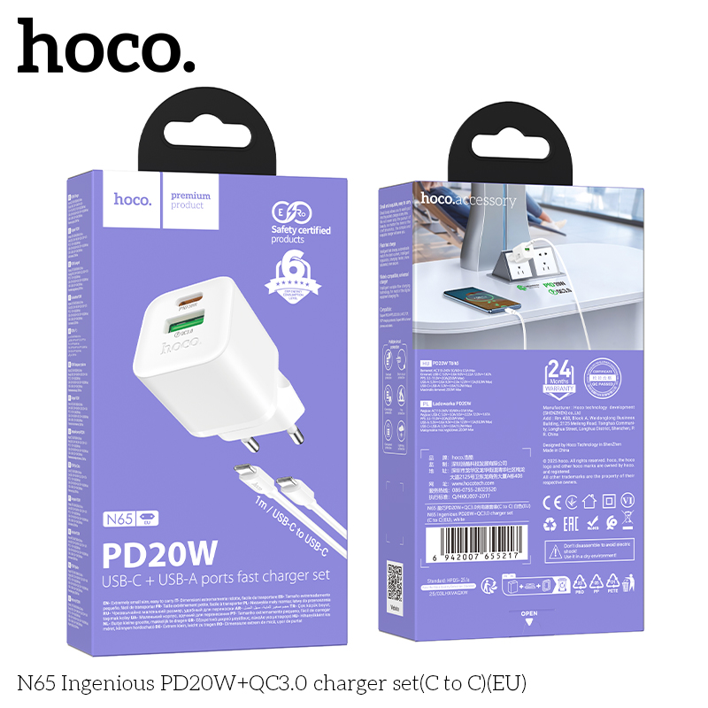 Bộ sạc N65 Ingenious PD20W+QC3.0 (C đến C) (EU)