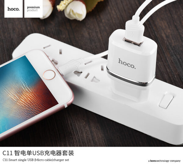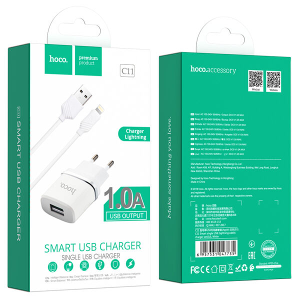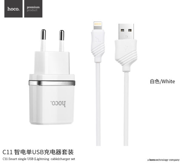 Bộ sạc USB đơn C11 Smart (Kèm cáp iPhone) (EU)