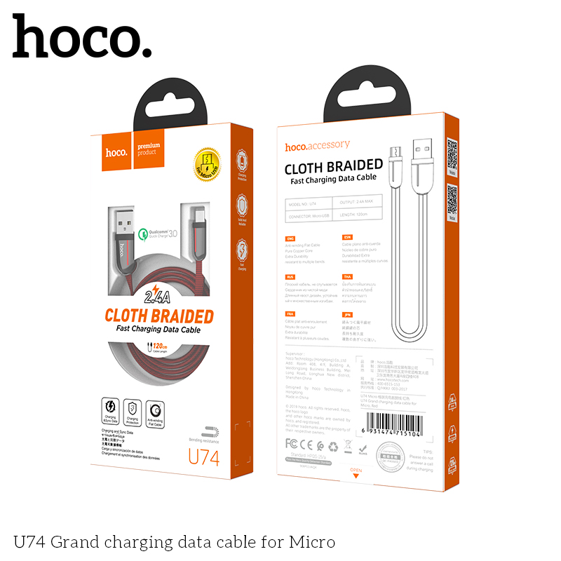 Cáp dữ liệu kèm sạc Hoco U74 Grand cho Micro