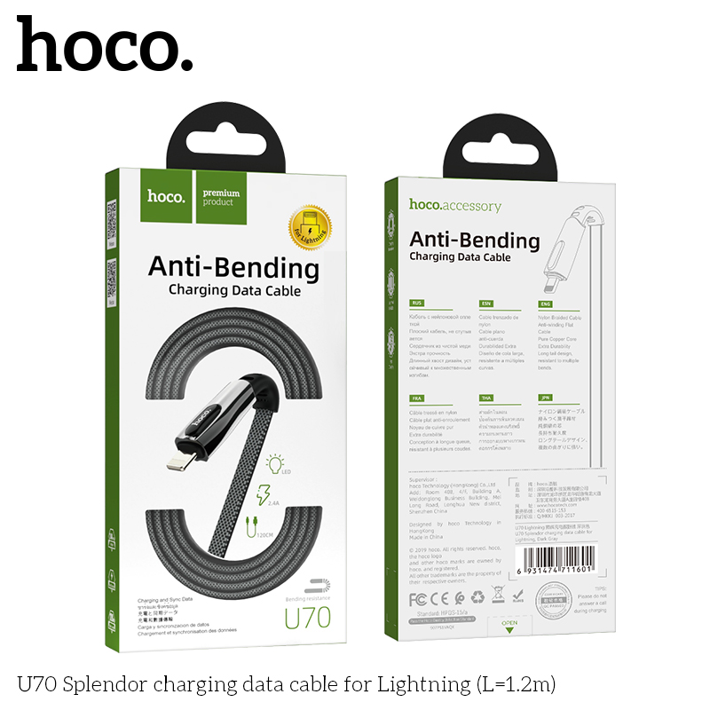 Cáp dữ liệu sạc Hoco U70 Splendor cho iPhone