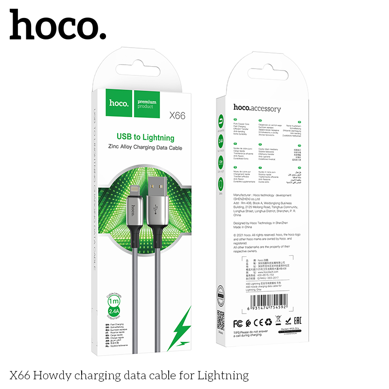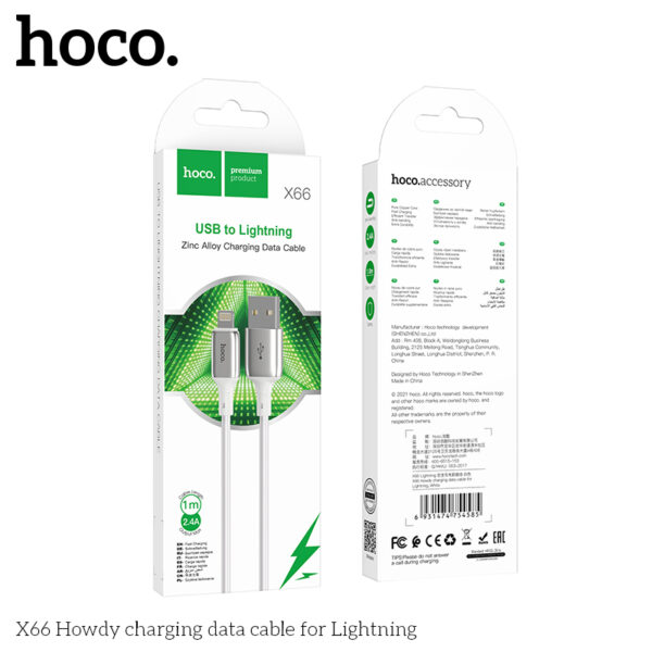 Cáp dữ liệu sạc Hoco X66 Howdy 2.4A iPhone