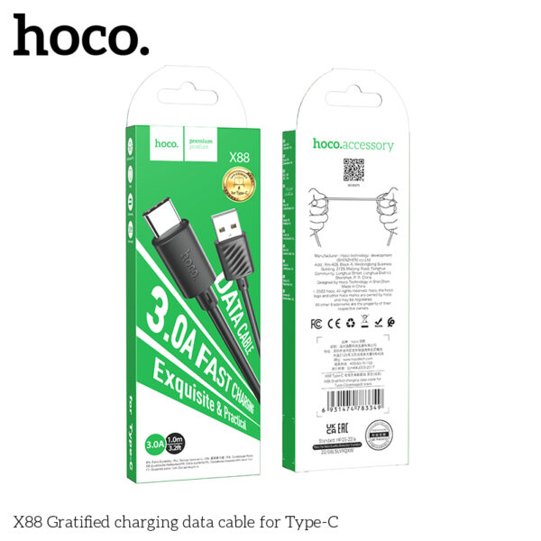 Cáp dữ liệu sạc Hoco X88 Gratified Type C 1M (chưa đóng gói)