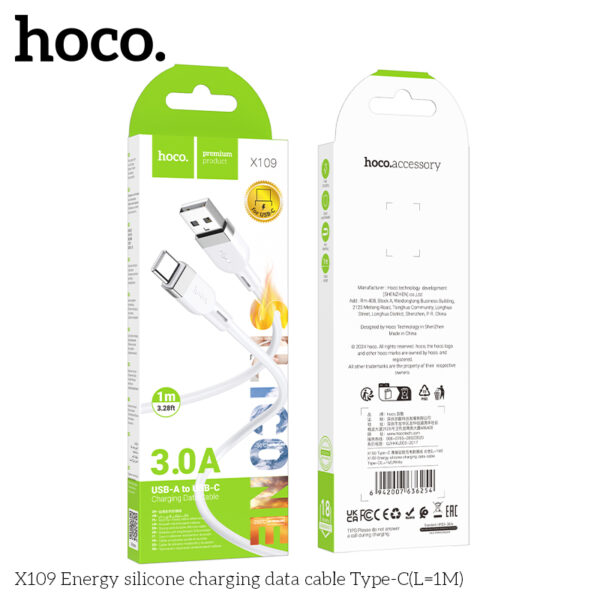 Cáp dữ liệu sạc silicon X109 Energy Type-C (Dài = 1M)