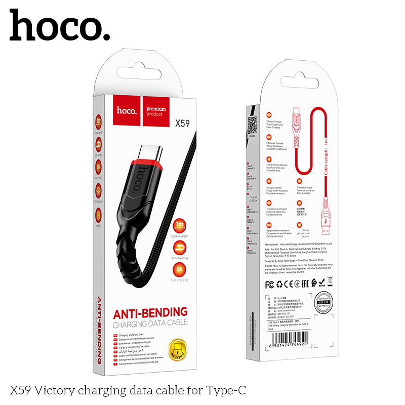 Cáp dữ liệu sạc X59 Victory cho Type C (1M)