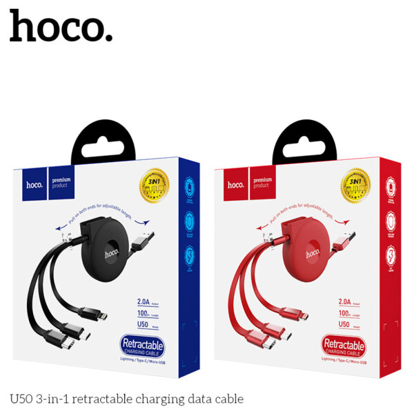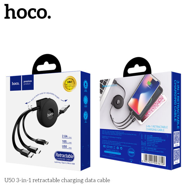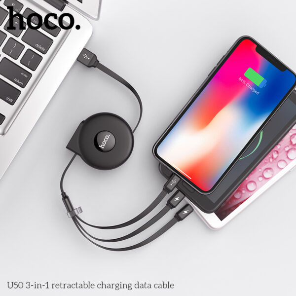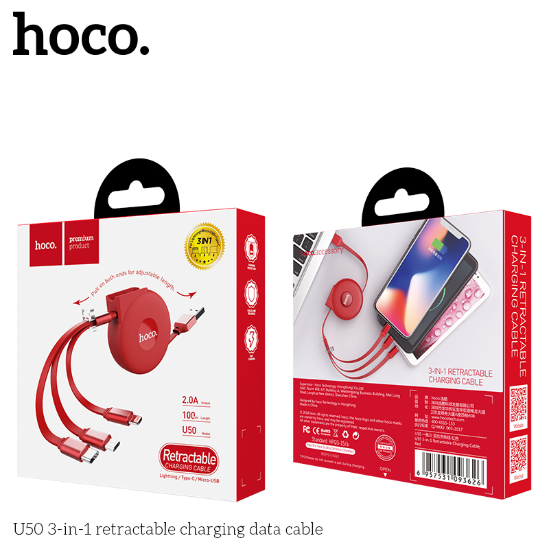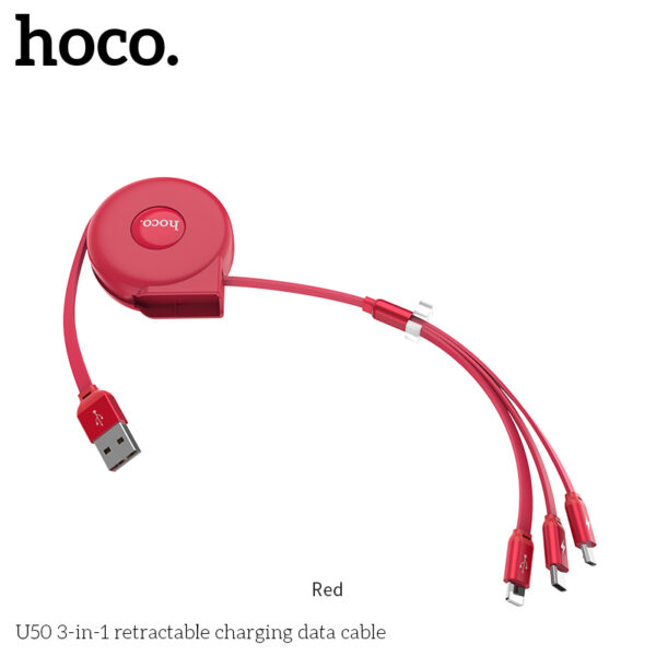 Cáp sạc Hoco rút gọn 3in1 U50 (iPhone + Micro USB + Type C)