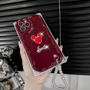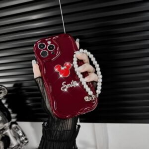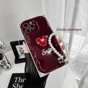 Case viền sóng đỏ đô mickey đá smilr kèm dây ngọc