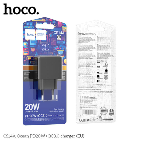 Cốc sạc nhanh Hoco CS14A Ocean PD20W+QC3.0 (EU)