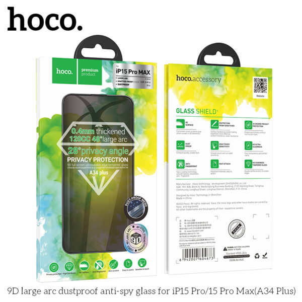 Cường lực chống nhìn trộm A34 Plus 9D cho iPhone 15 Pro max